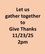 Join us for a worship of Giving Thanks at 2:00 pm in the sanctuary. Celebrate our gifts from God.
